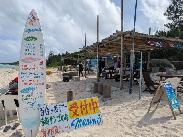 こちらが今回利用したマリン5。砂浜の小屋が受付です。優しくて気さくなおじさんが待機してます。
