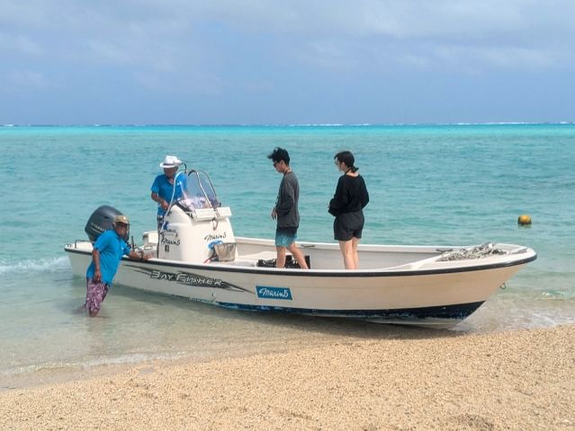 ラッシュガード(水着)を着てきているので、そのまま海へ。私はうっかりポケットに財布を入れてきてしまったのですが、船長のおじさんが預かっててくれました。