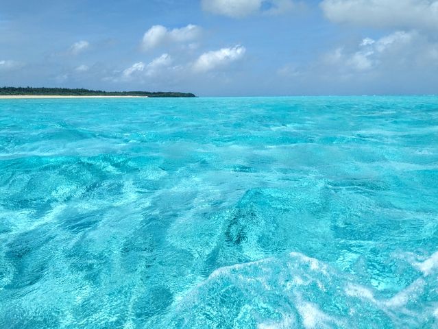船から見る与論島の海。水の色が鮮やか過ぎてたまりません!!