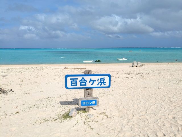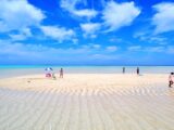 与論島の観光名所、百合ヶ浜。干潮時に姿を現す砂浜であり、その楽園のような光景目当てに島に訪れる人も多い人気観光スポットです。