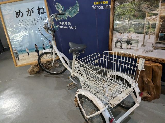 唐突に現れる白い自転車。これは与論島でロケが行われた映画『めがね』に登場する自転車です。映画を見た方は、きっとこの自転車の後ろに乗ってみたくなるはずです。
