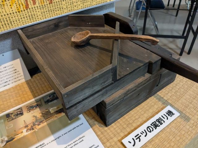 こちらの民具は「ソテツの実割り機」。かつては定期船も本数が少なく、台風で畑がやられると食料不足に陥ることが多かったそう。そんなときに、この道具を使ってソテツの実を食べることで凌いでいました。