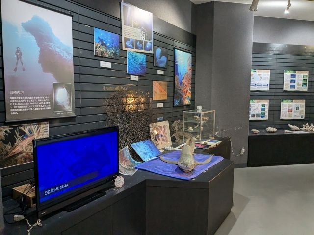 続く4階では与論の星空や鳥の写真、与論城の調査結果などが、3階では「沈船あまみ」「海中宮殿」などのダイビング映像が流れています。