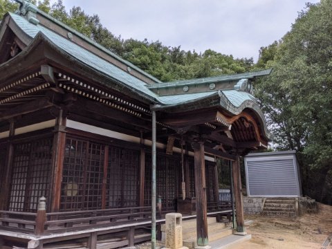 与島散策で見つけた唯一の神社が天津神社。木々に包まれており秘境感がありますが、集落から与島PA方面へ向かう県道274号線への通り道でもあります。