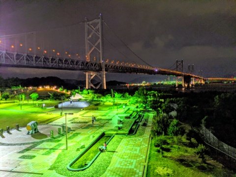 更に、夜になると坂出市や宇多津町といった香川県の街並みの夜景がとってもキレイ!岩黒島へ早朝のバスを利用するためここで車中泊したのですが、残暑厳しい9月末でも涼しい海風が吹き、とても快適に過ごすことができました。
