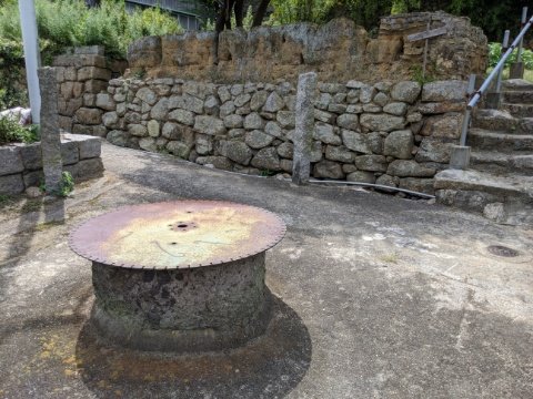 こちらのテーブルのようなものはかつての共同井戸。水道設備が整うまでは、ここから水を採って生活していたそう。フタ代わりに乗せられているのは、なんとノコギリの刃!与島は採石業で栄えていた時代があり、そのときの名残を感じます。