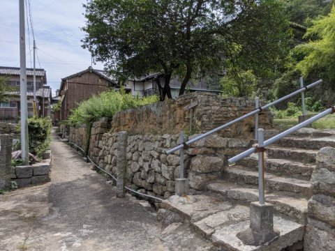 瀬戸大橋を支える塩飽(しわく)諸島の島の一つ。パーキングエリアが設置されているため、そこに車を停めて歩いて島内へ降りることができます。静かな港の集落は、ドライブの合間でのんびり散歩するのにぴったり。