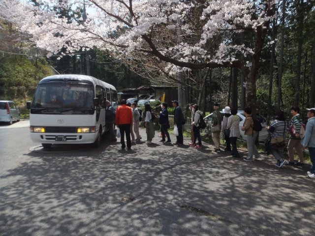 近鉄吉野駅の前には、バスがスタンバイしてるのですぐ乗ることができます。料金は450円。