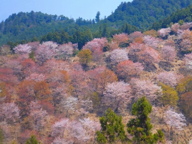 見事な桜ですね。いろんな色が見られますが、様々な種類の桜がこの吉野山にはあるんですね。