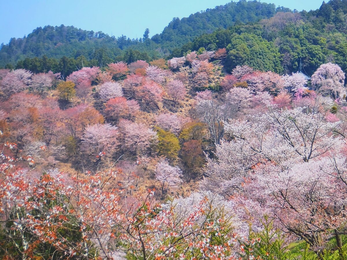 ふと山の方を見渡すと、ここからでも山を染めるサクラの姿を見ることができました。
