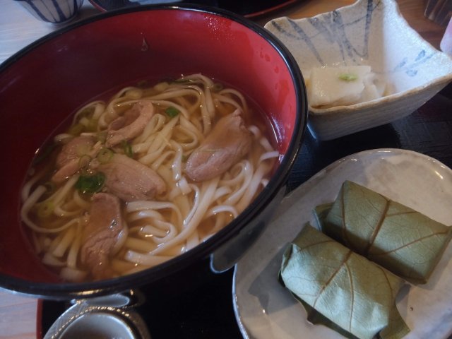 ここに来たらおすすめなのが鴨葛うどん定食。鴨の乗った葛うどん・ゴマ豆腐・柿の葉寿司という名物3品がセットになっており、お手軽に吉野名物を楽しむことができます。