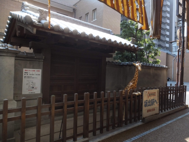 そんな四谷シモン人形館は、坂出駅から徒歩10分ほどの商店街の中にあります。建物の前では怪しいキリンさんがこちらを覗いているのですが、入り口は反対側。一度商店街を出て回り込む必要があります。