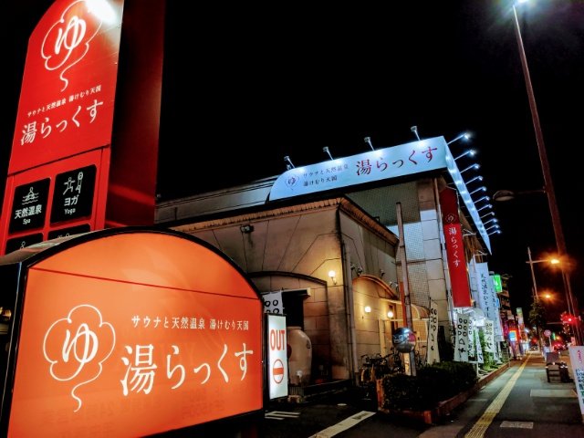そんな経緯で熊本市内にある湯らっくすへ。JR熊本駅から車で5分という市街地にある温泉施設。いわゆるスーパー銭湯です。