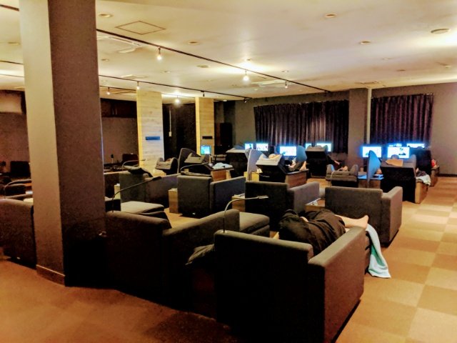 リクライニングシートやフルフラットシートなど、お休みポイントがたくさんある2階。照明も薄暗く、ほんのりアロマも香るリラックス空間となっているため、ぐっすり眠れそうです。