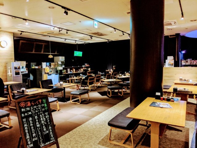 館内にはレストランがあります。おしゃれな雰囲気で、温泉施設の食事処というより、まるでカフェのよう。カウンター席も多く、一人でも心置きなくゆっくり過ごすことができます。営業時間も長くてとっても利用しやすい。