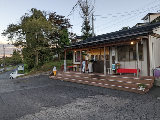 車の場合は、平泉スマートICから5分ほど。店舗の前に数台分の駐車スペースがあります。