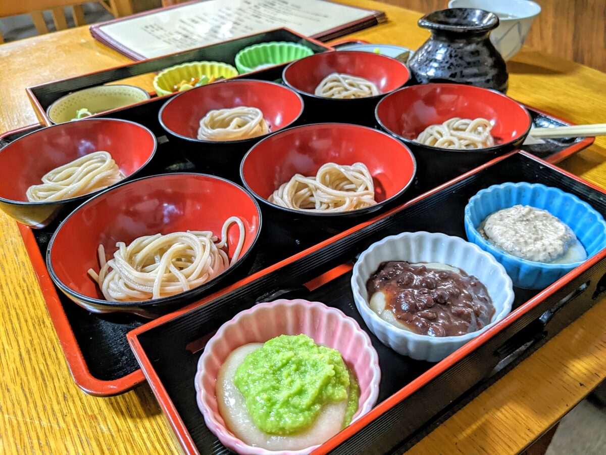 ソバと餅、それぞれの味のバリエーションを楽しむのはもちろん、「おソバ2杯食べたらお餅1つ」みたいに食べる順番を考えるのもまた楽しいです。