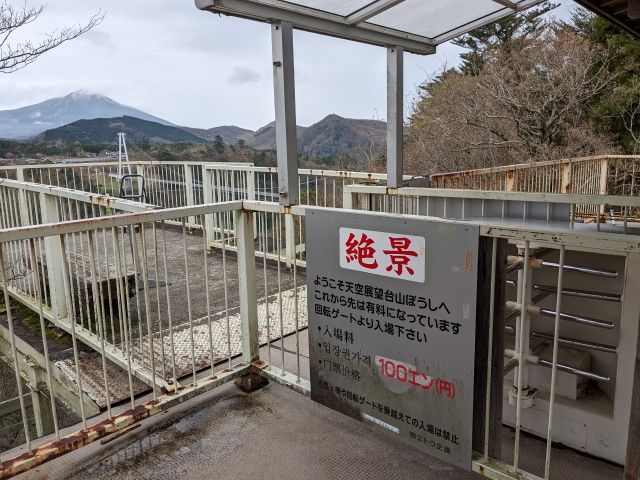 展望台もいくつかあり、こちらは「天空展望台山ぼうし」と書かれたスポット。錆びついたコインゲートがありますが、現在は無料とのこと。