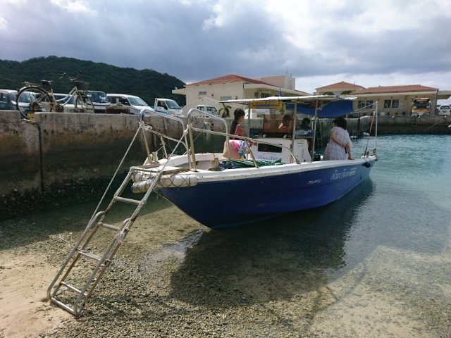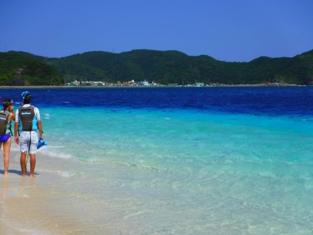 慶良間諸島の座間味島からは、近くにある3つの無人島「嘉比島(がひじま)」「安慶名敷島(あげなしくじま)」「安室島(あむろじま)」への渡船が出ています。港には無人島行きの船が何隻か停泊しており、それぞれが随時運航している模様。