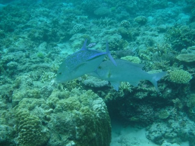 80cmほどに成長する大型のアジ。スピードはありますが、気性が荒いわけでも、危険生物でもありません。まるで大きなサメでもでてきそうな空気感だったので、ほっとしました・・・。