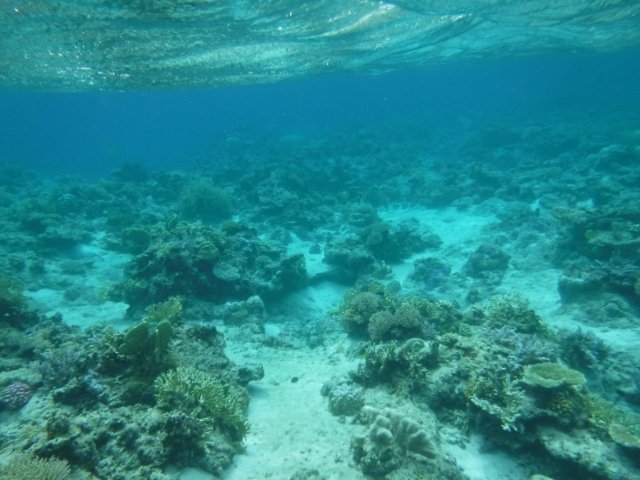 海底砂丘とは別の場所から潜ってみると、今度はすぐに広がるサンゴ礁の森。深さはずっと3~5mと足が付かないため不安になりますが、すぐに浜に戻れる距離なので大丈夫。