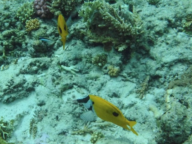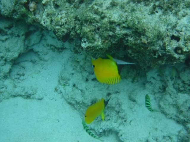 鮮やかなフエヤッコダイ(もしくはオオフエヤッコダイ)を発見。とんがったユニークな口は、岩場やサンゴの隙間に潜むヒドロ虫などを捕えるのに適しています。