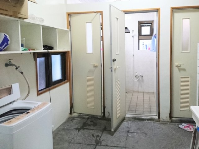 シャワーとトイレは共用ですが、こちらもきれい。洗濯機も自由に使うことができるので、連泊しても大丈夫。