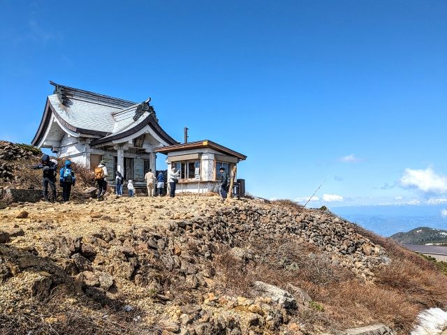 さて、この山頂レストハウス付近には御釜ともうひとつ見どころがあります。それがこちらの刈田嶺神社。こちらは「奥宮」にあたり、山麓にある「里宮」と対になっています。