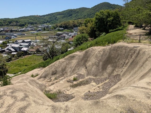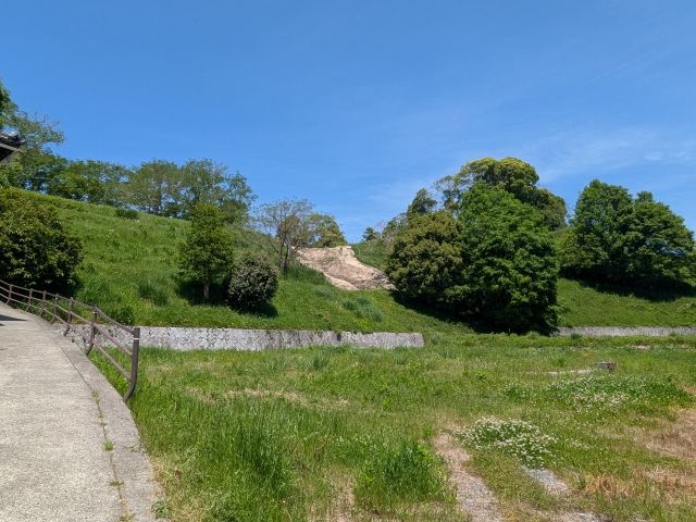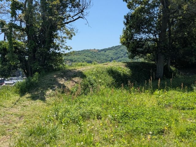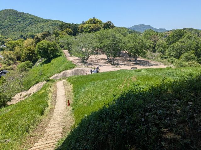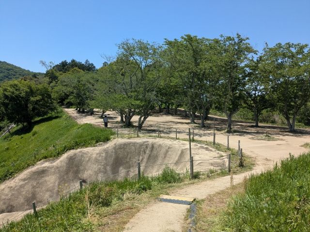 後円部には土塁が築かれています。こちらは戦国時代に築かれたとされているもの。この古墳には、備中高松城にて羽柴秀吉軍と戦った毛利軍が陣を敷いたという歴史があるのです。