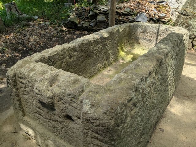 神社の傍のこちら。一見すると手水鉢かと思ったのですが、こちらは古墳の石棺であるそう。