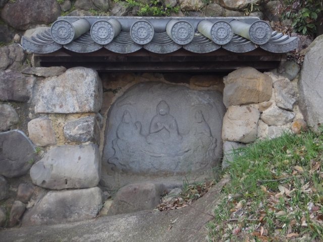 瓦屋根が敷かれた部分をよく見ると、石仏が置かれています。
